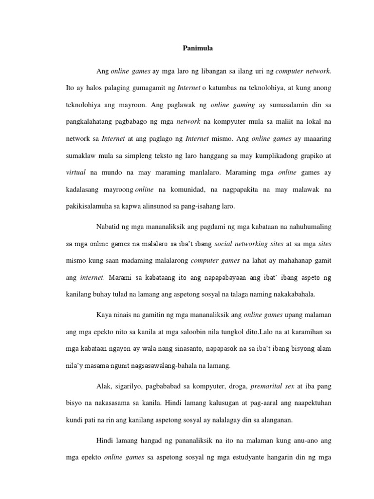 Kaya nanawagan ang grupo sa mga magulang at guro na tiyaking masigla ang mental health ng mga bata. Epekto Ng Online Games Sa Mga Estudyante Thesis motivated specialists enter the Write My Essay Online family. Epekto ng Internet sa Aspetong Sosyal ng mga Kabataan na Estudyante ng BatStateU FIL 102 Antenor Mary Anne C.