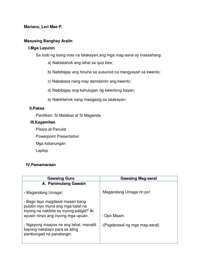 Kwentong Bayan Docx Banghay Aralin Sa Pagtuturo Ng Filipino 7 I Ii Layunin Sa Loob Ng Itinakdang Oras Ang Mga Mag Aaral Ay A Natatalakay Ang Course Hero