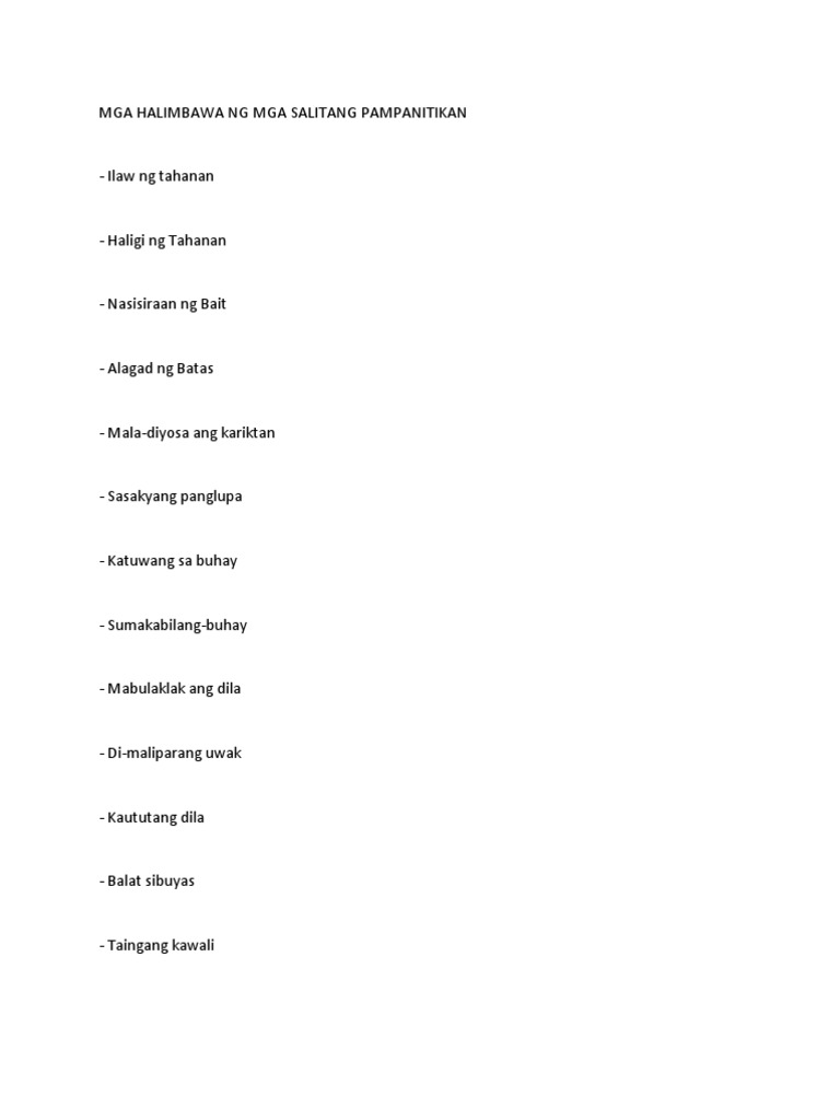 Mga Halimbawa Ng Mga Salitang Pampanitikan Pdf Business